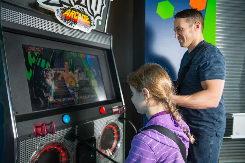 Maîtres du jeu examine comment l’intersection de l’audio, de la narration, des graphismes et du gameplay crée l’environnement immersif des consoles de jeux vidéo actuelles. Vivez l’évolution du jeu vidéo, du mémorable Pong aux jeux photoréalistes et immersifs d’aujourd’hui. Entrez dans un jeu et devenez vous-même un personnage ! Essayez-vous à la manipulation d’une manette Nintendo géante, jouez à Tetris sur une Game Boy géante et testez vos connaissances en musique de jeux vidéo rétro.